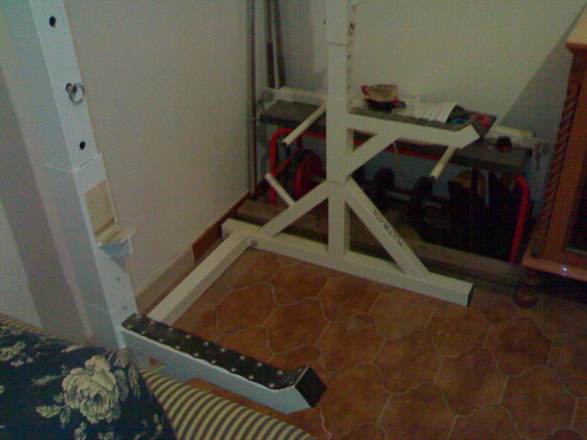 Il secondo è un mezzo rack, il quale permette di eseguire esercizi bassi come stacchi da terra, floor bench e altri esercizi importantissimi. Il prezzo al quale vendo questo rack è di 100 €.