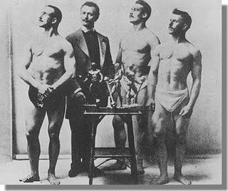 vorrei riproporre qui un sunto dei molti scritti che Lorenzo Castiglioni sta curando da un po' di tempo in merito agli inizi del culturismo. Io l'ho trovato molto istruttivo, e considero questo post il gemello di quello in Rest Pause "il BB nell'arte".