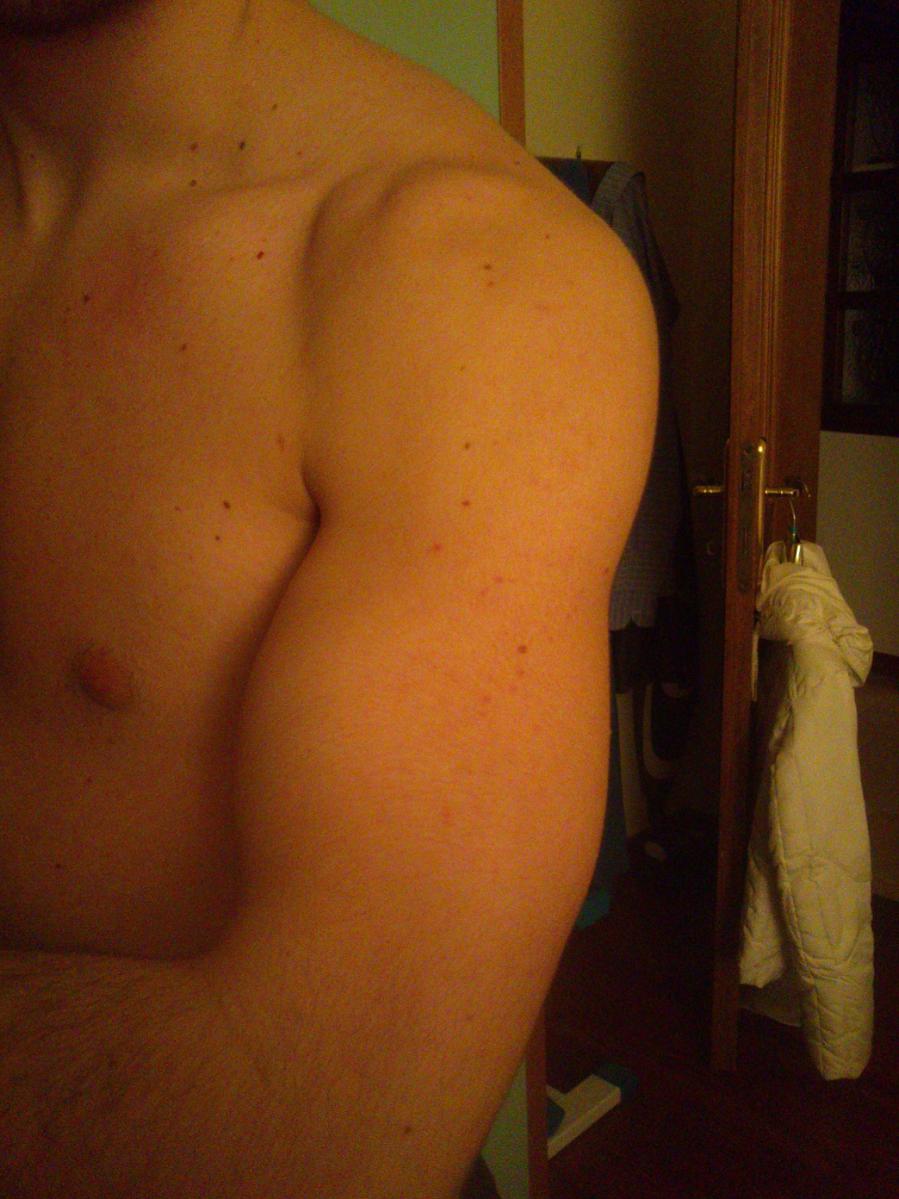 Per la dieta ne seguo una, penso sia una dieta classica, assumo circa 110-120g di proteine al giorno. Non è una dieta precissisima nel senso che seguo con attenzione alcuni consigli importanti letti in alcuni forum, ma non sono la persona che misura i grammi di carboidrati che mangia in un giorno. Assumo anche creatina monoidrato micronizzata da meno di un mese, precisamente 5g al giorno ( bevo circa 2.5litri di acqua al giorno )