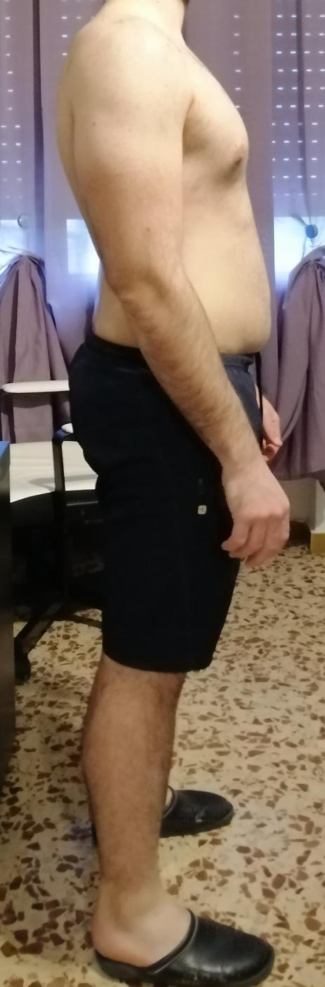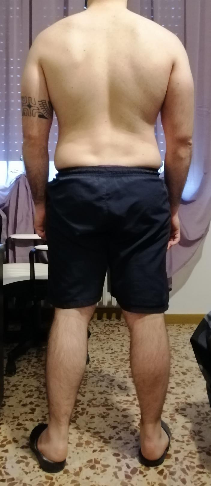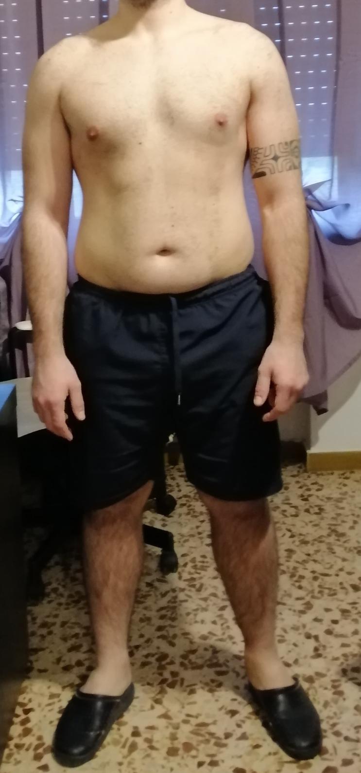 (PRESENTE): Allora attualmente peso 87,700 kg stavo frequentando la palestra fino all’arrivo del covid-19 , quindi hanno chiuso , e di conseguenza mi sto allenando a casa come posso , per fortuna ho un bilanciere con un po' di dischi , con questi faccio quello che mi riesce , a giorni alterni cerco di fare circuiti a corpo libero più la corda .