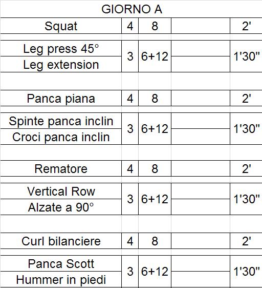 Ciao a tutti, senza troppi giri di parole vorrei sapere cosa pensate quando vedete una scheda del genere. Il protocollo d'allenamento è a cadenza trisettimanale ABA BAB.