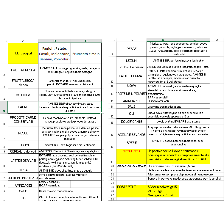lo squat non è presente perchè non riesco da sola ad eseguirlo correttamente nemmeno a corpo libero, ho dei problemi alla caviglia da quando mi sono fratturata la tibia (anche se son passati parecchi anni sotto sforzo accuso dolore) e un leggero valgismo alle ginocchia che me le fa ruotare verso l'interno nel momento in cui provo a fare squat, ma questa non vuole essere una giustificazione. Per quanto riguarda la questione intolleranze non saprei da dove partire, ho fatto due esami differenti, a distanza di tempo e sono risultata intollerante a cose diverse di volta in volta, quindi non so quanto di veritiero ci possa essere. Invece per la questione integrazione sono pienamente d'accordo, sembra una farmacia, spendo un'infinità di soldi e il piano alimentare è davvero poco vario.