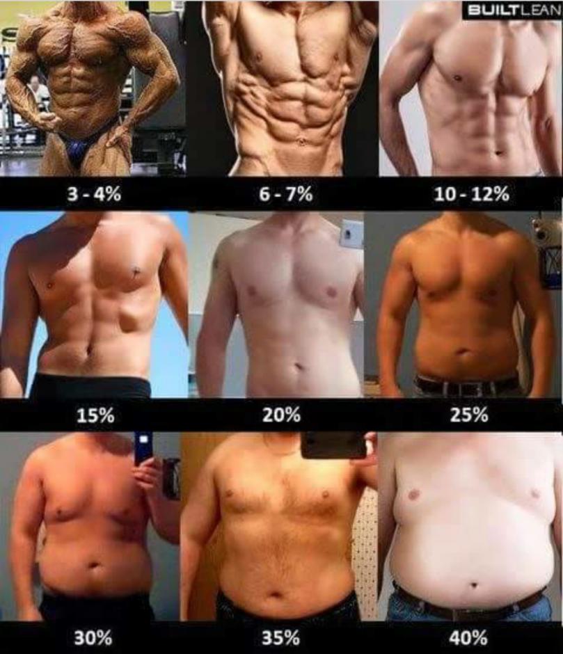 Ciao, non so indicarti la %di bf, ho messo su una bella panza ma sono massiccio. Per farti capire, la forma di deltoidi e tricipiti è ben visibile anche se appannata. Braccio "a freddo" 44 e pizzichi poco più che la pelle. Sono comunque pesante di mio, sono quasi 100 ma non li dimostro! 😉