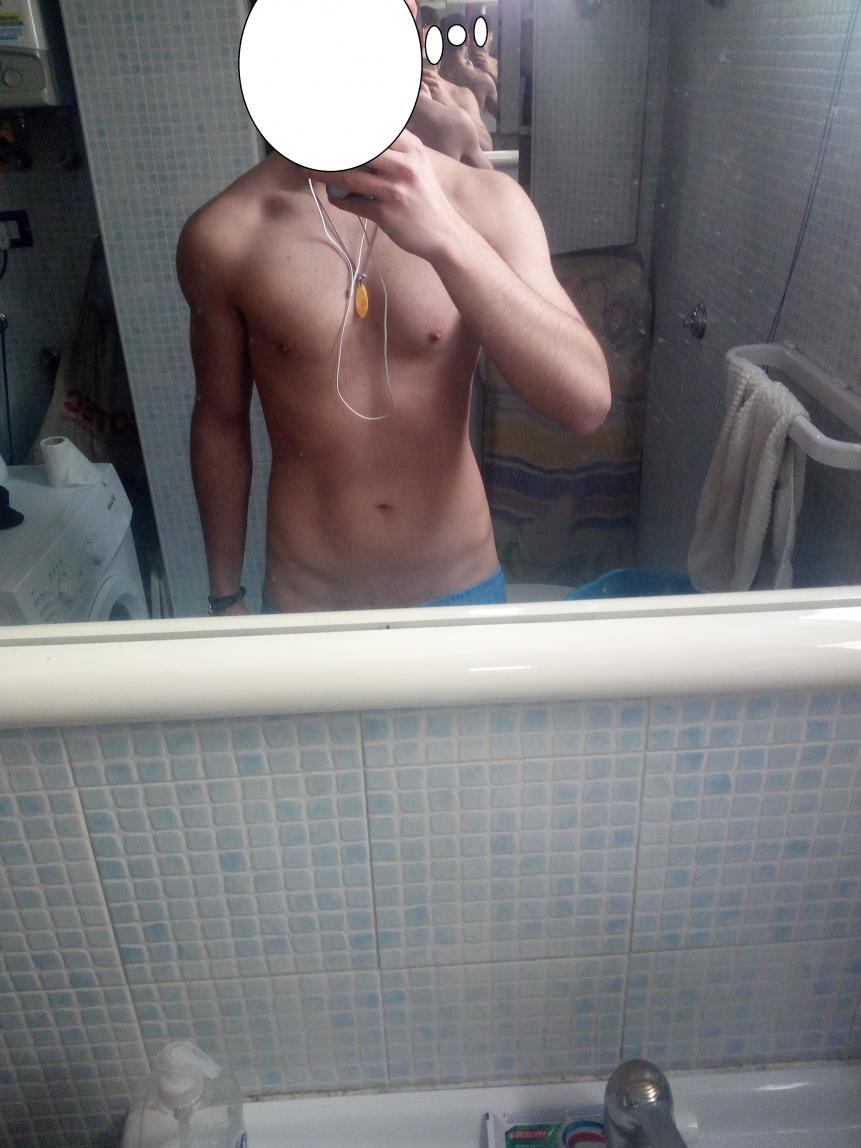Nel petto comunque ci sta ancora grasso però è comparsa diciamo la "curva" nella parte inferiore (scusate la descrizione penosa) , nel senso che se sollevo il petto ci sta ancora grasso molliccio quindi di quella curva si sente il muscolo ma rimane molliccia per la presenza del grasso . Molte cose appaiono se gioco un pò con la luce che entra dalla finestra del bagno , voglio essere il più chiaro possibile sulla mia condizione in modo che non mi monto la testa o cose del genere .