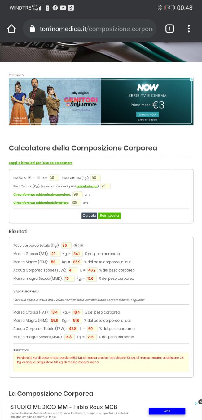Sono alto 174 peso 85 kg età 34 circonferenza addome preso sulla line Dell ombelico 108,