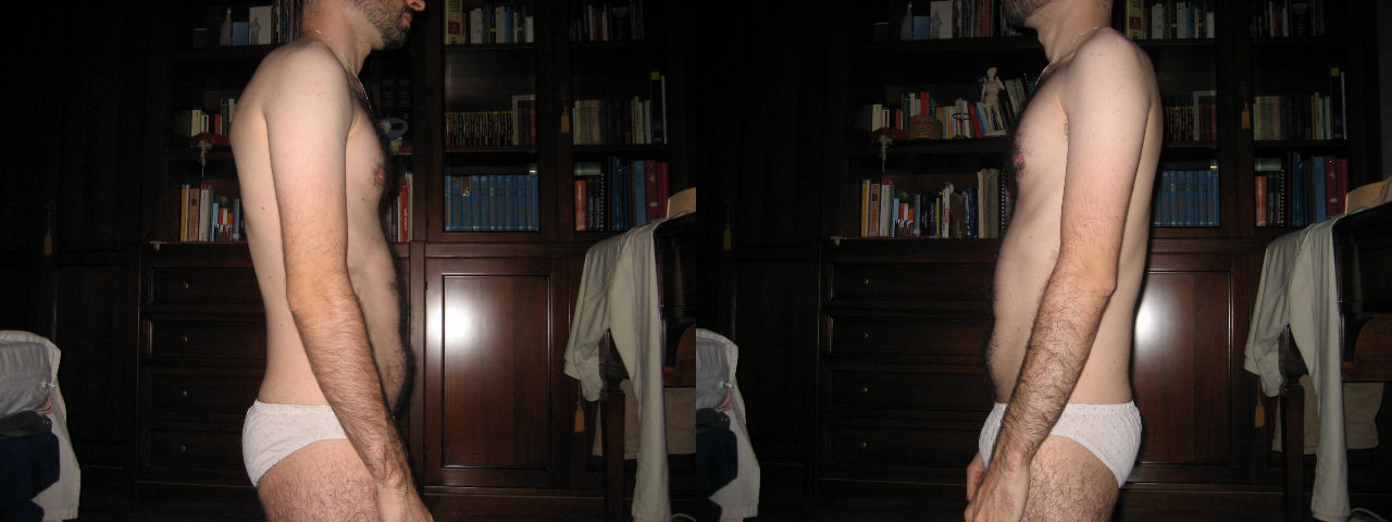 Ho 26 anni e sono alto 175cm x 60kg, sono dunque sottopeso, eppure come si vede dalle foto ho un pancione! Le foto le ho fatte ieri, 20 Ottobre 2007.