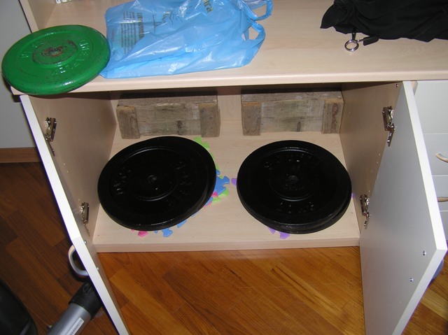 Per fare la panca uso, come si vede, una panchetta per gli addominali, dato che è piccola e si ripiega. Il massimo provato è stato 110Kg. Ovviamente, la panca la danno per 70Kg totali![]()