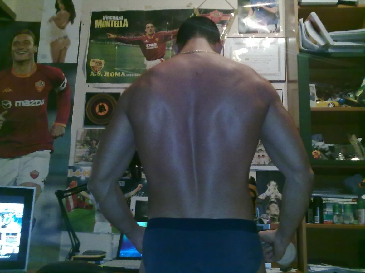 passandro solo ai punti carenti, metterei braccia e petto (che ha una forma strana) poi dovresti sgrassarti un pò, hai dei bei lombari quindi tanto vale valorizzarli con un v-shape.