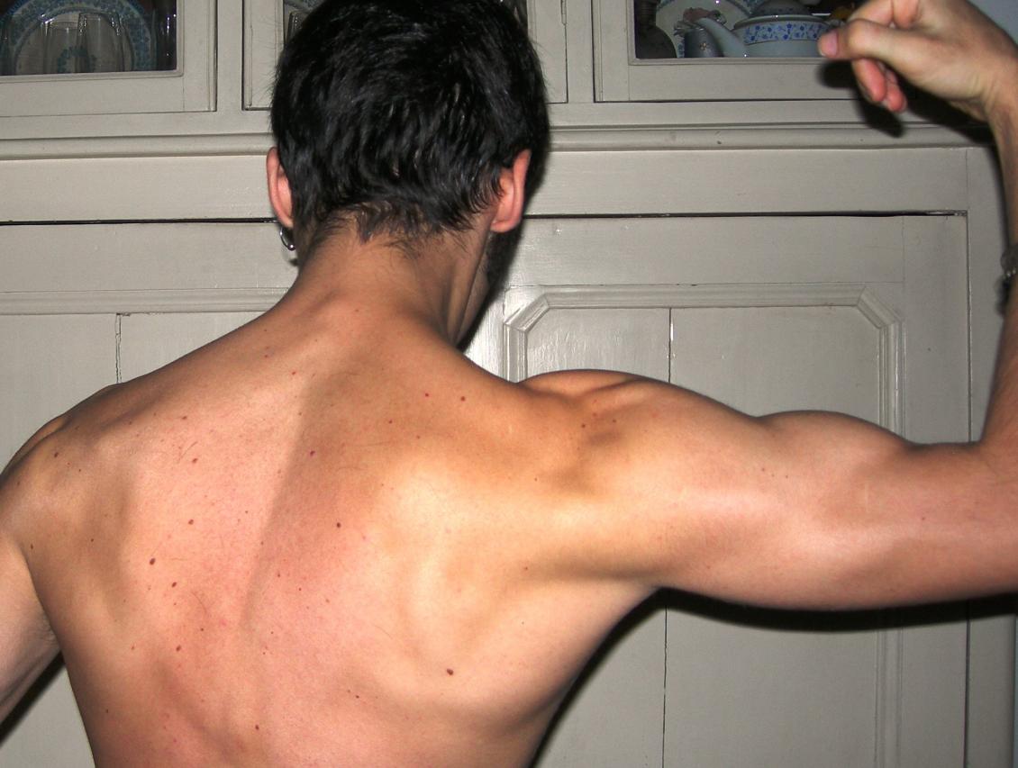 Apro nuovo post con la situazione attuale, dopo due mesi di allenamento... ricordo che ho ricominciato dopo due-tre anni se non più di (quasi) fermo. Mi rendo conto che le foto non sono un granché, e solo in parte confrontabili con quelle del vecchio post... ad ogni modo, questo il risultato di due mesi di body-building, più alcuni esercizi di stretching, cardio ed allenamento boxe al sacco. Ho preso quattro chili circa, rispetto alle prime foto.