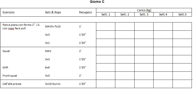 Mi piacerebbe ricevere pareri e consigli su come migliorare o modificare il MAV. Sono uscito da 6 settimane di MAV, però la tecnica di esecuzione dei fondamentali è ancora ampiamente rivedibile, quindi sotto con altre 5 settimane di MAV in attesa del VO_BO.