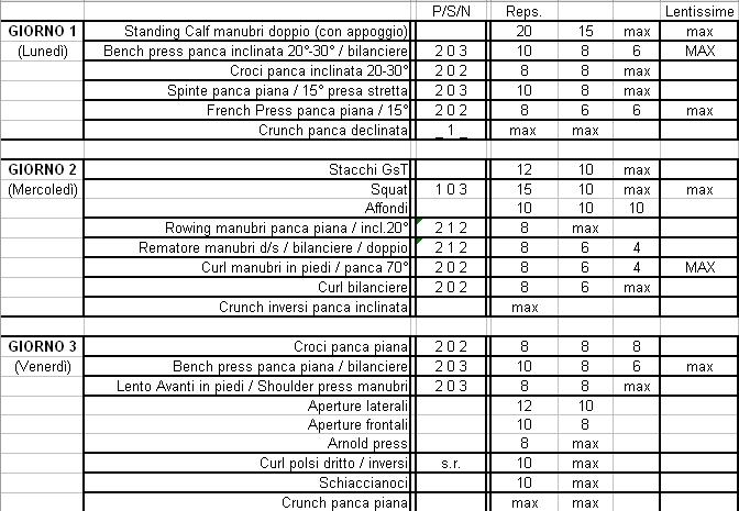 io cerco di orientarmi più sull'idea del BII ma per ora ho ideato una scheda con 3 all. x settimana, e volevo sapere può convenire, con 2 all. settimanali...ora i giorni nn sono issi anche se li ho scritto lun-mer-ven, ma dipendono dal tempo e dal recupero soprattutto!!