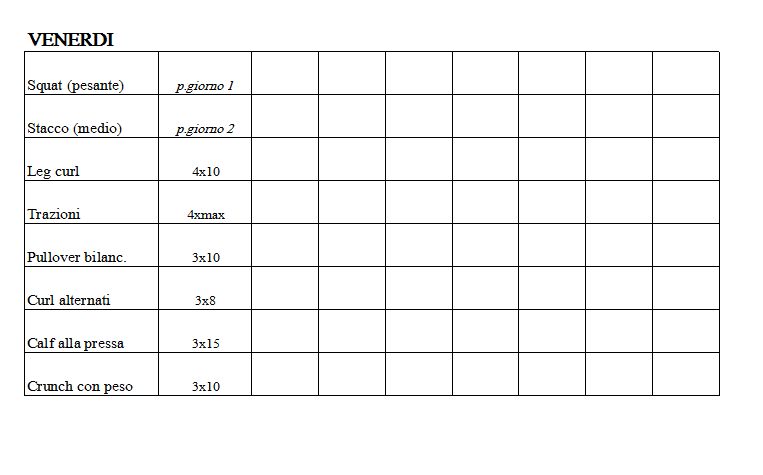 -Venerdì: Squat (pesante) - Stacco (medio)