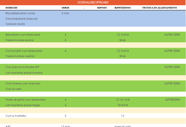 P.S mi sono dimenticato di mettere il n di serie all'allenamento dei dorsali/bicipiti, comunque è 4 e le ripetizioni 10-8-8-8