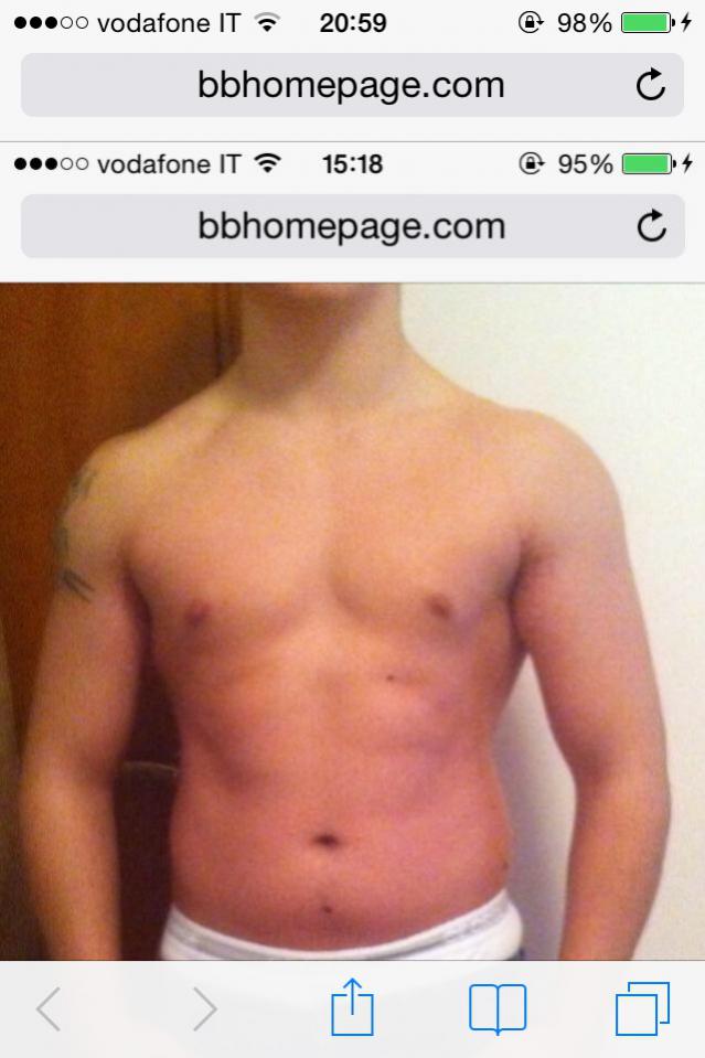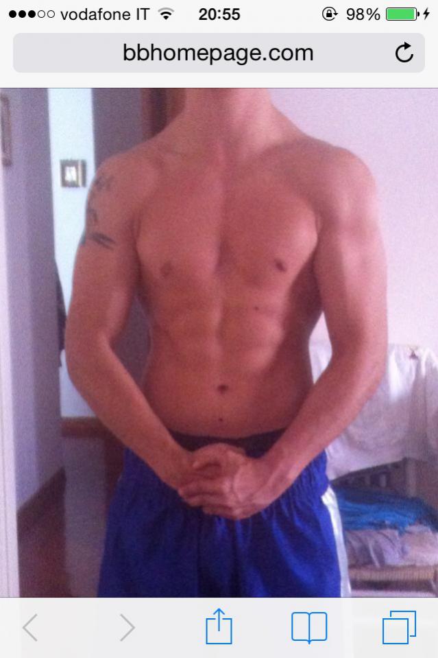 Ho 18 anni e mi sono iscritto in palestra a maggio 2013 per un programma di riabilitazione, che prevedeva attività aerobica, qualche esercizio a corpo libero e molto stretching. Sono stato un pugile agonista e ho disputato diversi incontri cogliendo grandi soddisfazioni ed ottimi risultati, tra cui anche una partecipazione alle fasi finali dei campionati italiani assoluti della mia categoria. Ad aprile 2013 purtoppo un incidente mi provoco un grave infortunio con conseguente parziale distacco della retina e microlesioni interne da operare con il laser presso un centro medico specializzato non poco distante da me. I medici come la federazione mi impedironó di proseguire attività fisica per qualche mese a causa del trauma commotivo subito e dopo una successiva analisi mi è stata revocata la licenza da atleta agonista. Cominciai cosi il percorso in palestra per necessità più che per passione e mi ritrovai affascinato dal mondo del bodybuilding tanto che a novembre cominciai il mio percorso. Partivo da una situazione di estremo sottopeso dato che prima dovevo rientrare nei limiti di peso della mia categoria, precisamente 55kg. Iniziai come di consueto con un programma di forza seguito da massa, ad aprile ero arrivato ad 83 kg, per poi definirmi gradualmente fino a 70 kg ad agosto, ora dopo uno stop forzato mi trovo a 65 kg. Ora un po di dati, ho 18 anni, alto 1.74, 65 kg, bf 10% e anzianità di allenamento 10 mesi. Mi alleno in monofrequenza perchè non mi trovavo bene in multifrequenza.