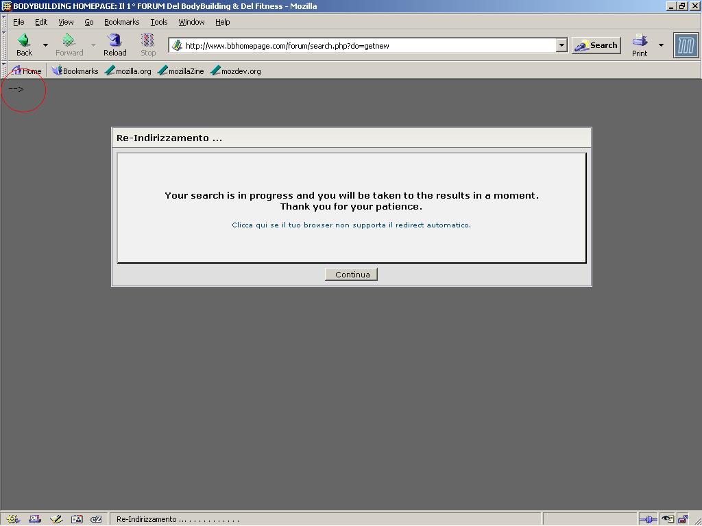 usando mozilla v 1.7.3 su un win xp sp2 si nota un segno --> in alto a sx nelle schermate di attesa (un commento chiuso 2 volte?). allego immagine...niente di grave, tanto per saperlo.