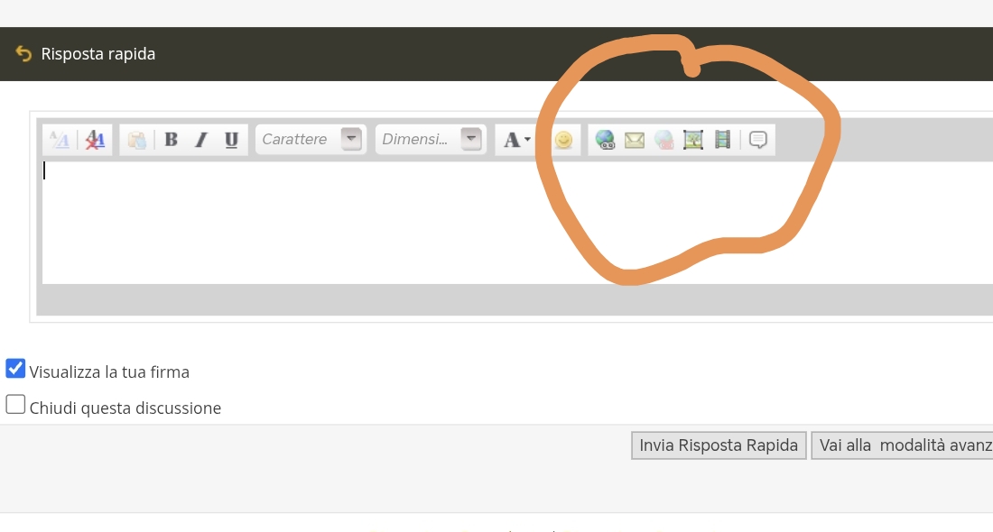 Sarò sicuramente tarda io....ma mica lo trovo questo tasto per allegare la foto!!! Potresti indicarmelo? Magari non esce da cellulare, forse devo collegarmi da PC?