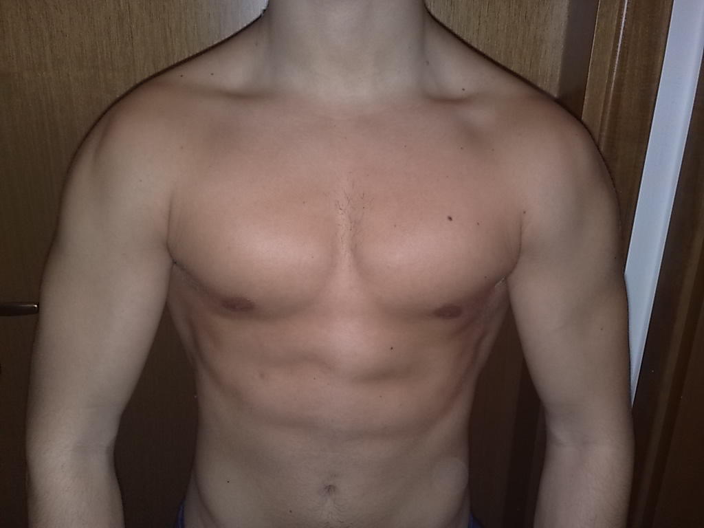 nell'allegato c'è una mia foto..comunque ho un poco di grasso(meno di un cm) nella parte bassa dell'addome..quindi ho pensato che togliere i carbo sia eccessivo..farò solo un pò di cardio a fine allenamento(20 min di tapis a 145 battiti,ok ?)