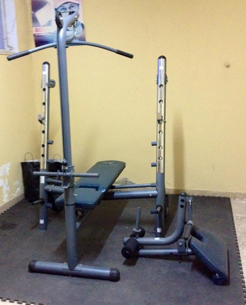 aggiungo ghisa per 80 kg + 1 bilanciere da 18 kg + 2 manubri da 2kg l'uno.