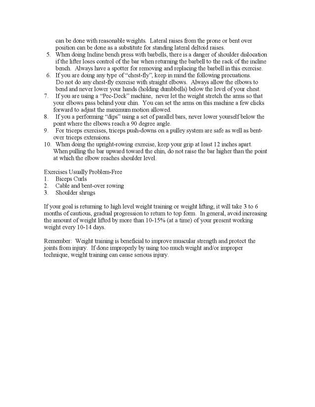 In sintesi, dopo l'appropriato periodo di astinenza dai pesi (fino a sei mesi, a me avevano detto che dopo 4 - 6 settimane dalla rimozione del tutore avrei anzi dovuto ricominciare...):