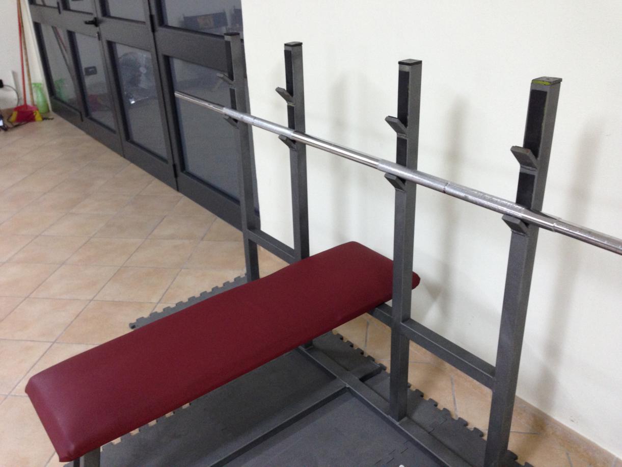 Panca piana da palestra dotata di supporti. Altezza 1.15m; larghezza 1.15m; profondità 1.08m. Ritiro in zona presso Tocco da Casauria, prov. Pescara o possibile spedizione con corriere a carico dell'acquirente. Perfette condizioni. Prezzo 200€
