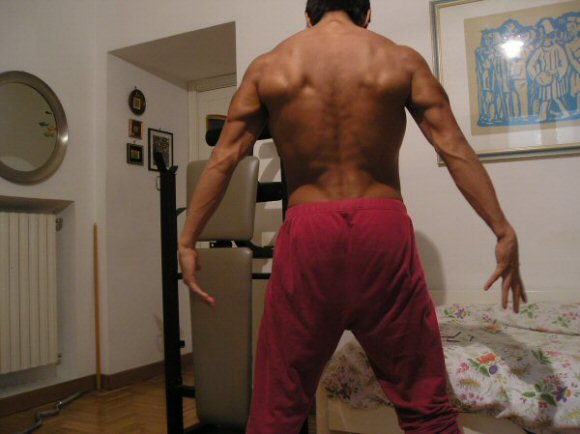bella schiena ma hai un bicipite senza la punta o è venuta male la foto? quanto pesi?