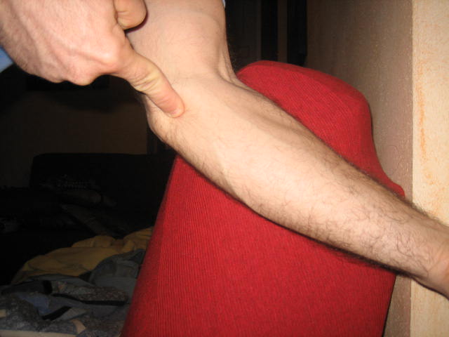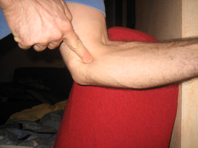 Le prime tre fotografie (6825, 6827 e 6828) indicano il punto che mi duole, in realtà sembra essere più una piccola zona circoscritta intorno e dietro all'osso sporgente del gomito (credo si chiami ulna), mi fa male alla pressione e maggiormente alla mattina appena alzato.