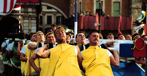 Bellissima è anche la sfilata in costumi medievali precedente al gioco vero e proprio.
