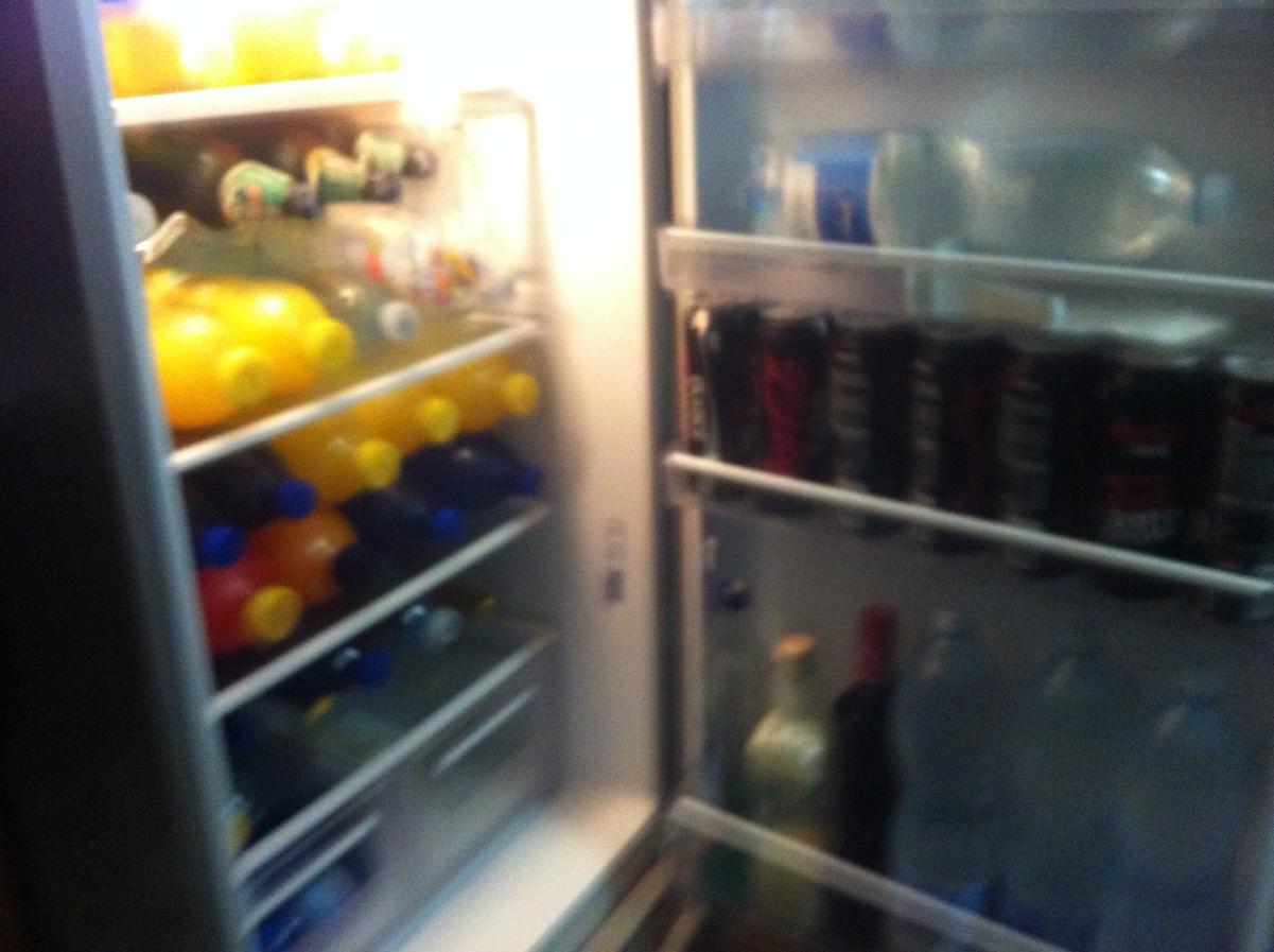 Poi come colpo di grazia l'interno del mio frigo bar....Perchè cosa vuoi ? Se viene qualcuno ad allenarsi con me non gli offri da bere mentre ti stai allenando ?