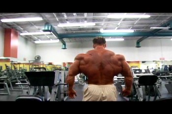 Detto che ha un'eccellente massa e definizione, nella seconda foto, tuttavia dimostra un certo sbilanciamento a favore di braccia e spalle, con un petto piuttosto poco sviluppato.