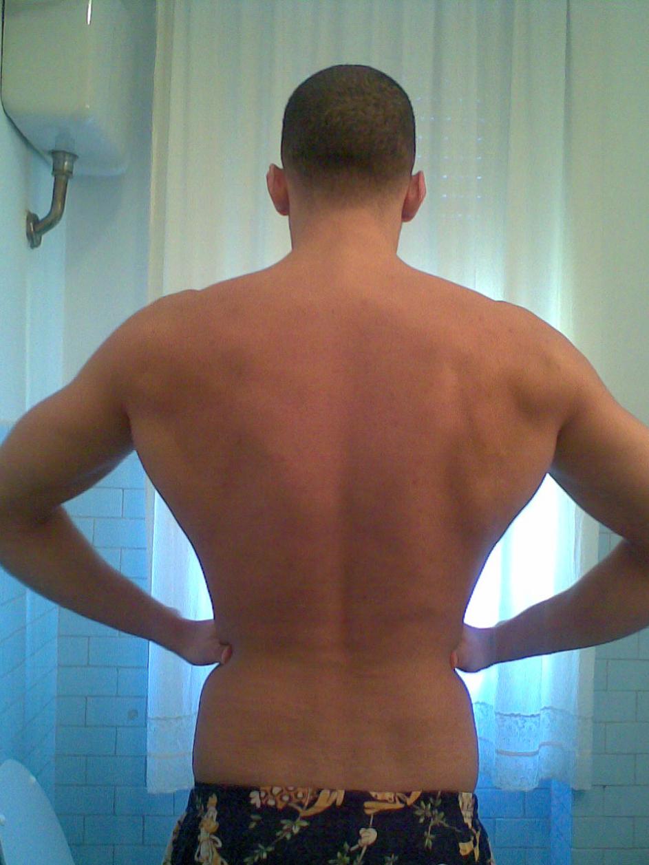 Ai Ai Ai, o sono artefatti JPEG o sono smagliature quelle in fondo alla schiena. Cmq sembri un pò altino com BF, non si riesce a distinguere i muscoli del dorso, magari è una tua caratteristica genetica...