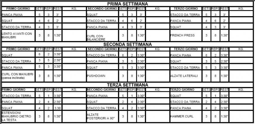 Fai sempre 2 serie di riscaldamento prima dell'esercizio (tranne nell'ultimo in 3x8).