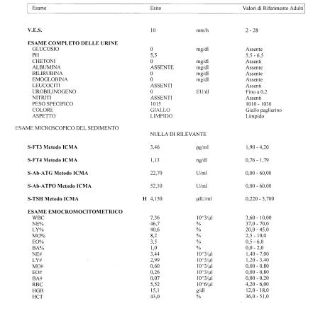 Come ogni anno da tradione faccio le analisi a Gennaio e come ogni anno dimentico di rileggere il thread per fare aggiungere qualche esame interessante!