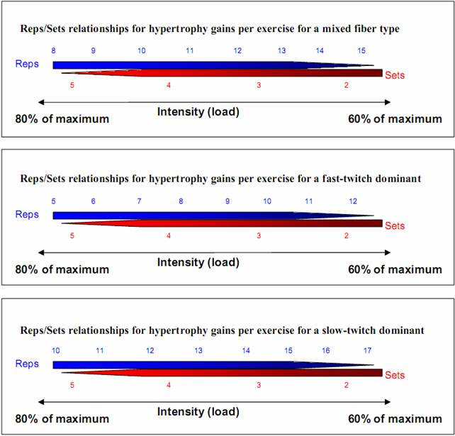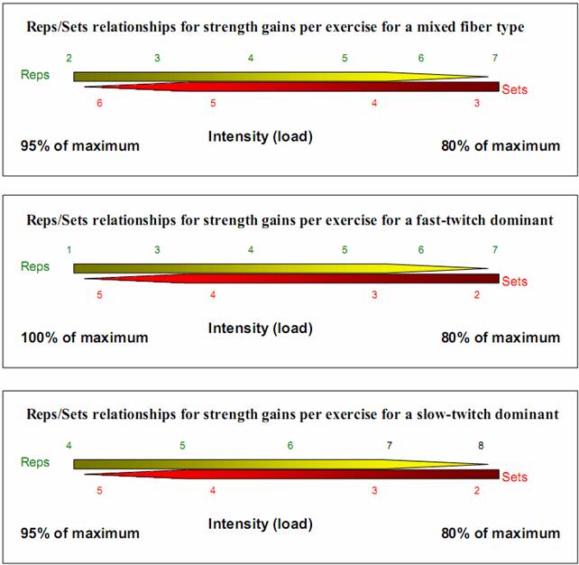 Non ci sono schemi di ripetizioni e serie perfetti. Dipende dalle fibre del singolo individuo, dalla sua esperienza e dal suo stato. I seguenti grafici daranno un’idea di come partire per pianificare numero di serie e ripetizioni.