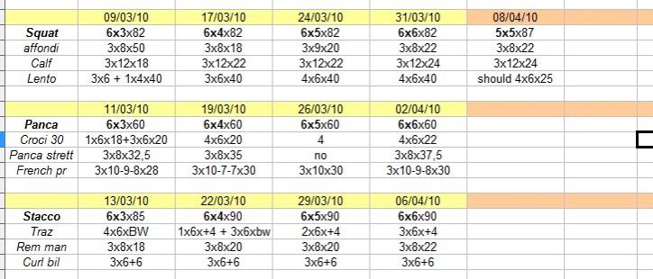 visto che da lunedì inizierò il ciclo russo oggi ho provato il massimale di stacco con il metodo: provo 3 ripetizioni ma con 2-3 di margine,quando non avevo piu quel margine ho aumentato a 2 ma con margine e infine massimali singoli da 1colpo..ebbene sono arrivato a 105 chili con esecuzione controllata, spinta dei piedi sul terreno e salita contemporanea di culo e spalle![]()