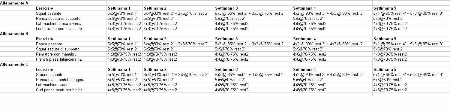 Comunque non devi necessariamente calcolare il massimale, se questo ti porta via tempo, puoi sempre finire la progressione, fare 1 settimana di scarico ed iniziare la stessa progressione ancora ma con % più alte.