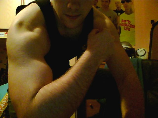 Ciao a tutti ne approfitto per dirvi che avevate ragione, una volta raggiunti gli 85 kg passando da un circonferenza braccio da 36,5 cm a 39,5 ho iniziato a modificare la mia dieta per definirmi come avevano consigliato molti di voi, mantenendo una scheda di allenamento per massa (questo perchè l'istruttore non lo incontravo quasi mai in palestra..) ora vi mostro questa semplice foto dove comunque mette a risalto i 39cm del braccio nonostante sia calato da 85kg a 82 kg, nella sezione baby builders metterò anche la mia nuova dieta e il tipo di allenamento che voglio fare per la definizione, ringrazio tutti![]()