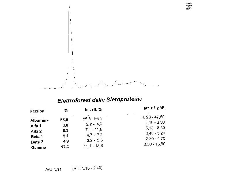 4) bilirubina totale: 1.30mg/dl con range di 0.10-1.20
