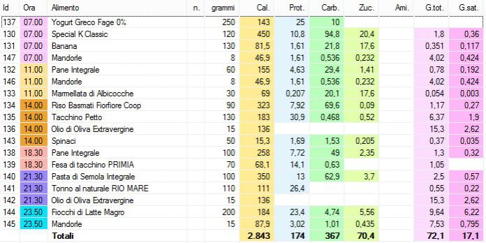 Di seguito posto la dieta a cui ho pensato. Sicuramente andrà rivista. Inoltre non sono riuscito a raggiungere le 3000kcal senza sbilanciare i nutrienti. Spero che mi possiate aiutare