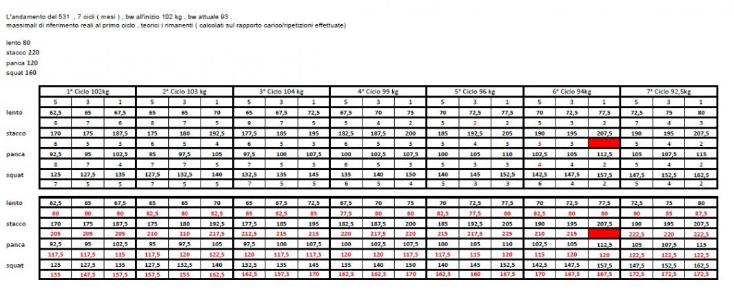 Teorico 135, best lift ( 115x2) corrispondono a 122.5 kg, vale quanto detto sopra per il lento , tuttavia se penso al 2011/2012 , faccio i salti di gioia .