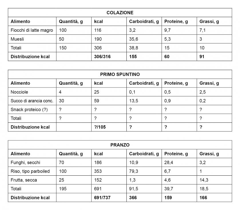 Ho dunque messo un buon 35% nel pasto pre wo, e portato al 10% il secondo spuntino pre wo che farò prima di allenarmi (?a). Che ne dite?