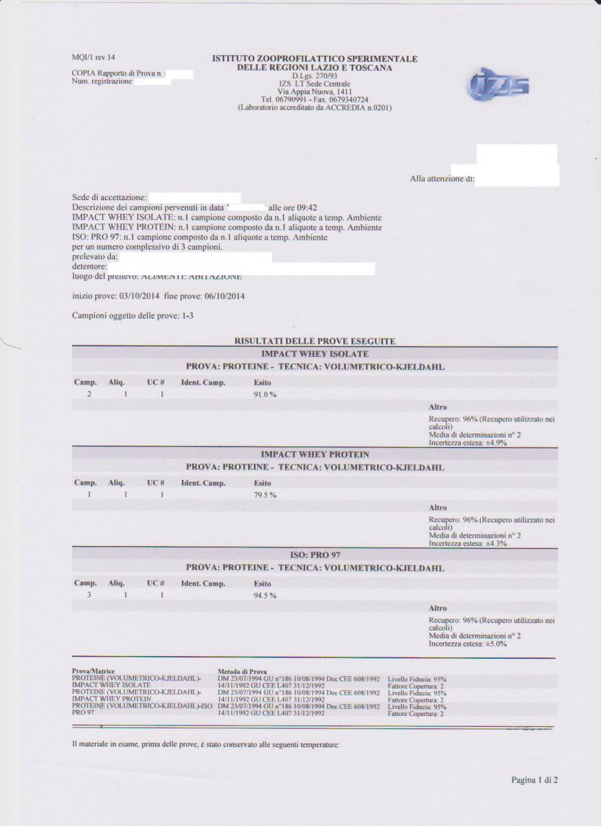 Originariamente Scritto da Ramificato Grazie Orepex, mi sembra un'analisi abbastanza seria. Non l'avevo proprio trovata Istituto zooprofilattico Lazio e Toscana A breve usciranno per tutti i marchi, sia da questo ente che da un laboratorio di analisi di un' università italiana ( non ricordo quale )