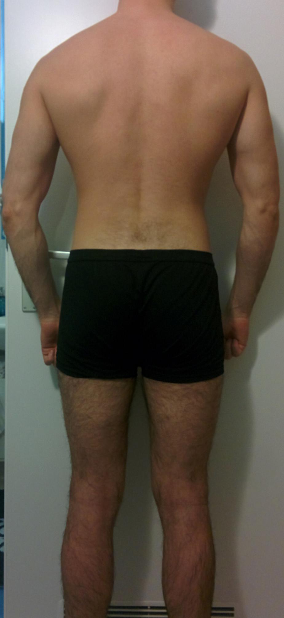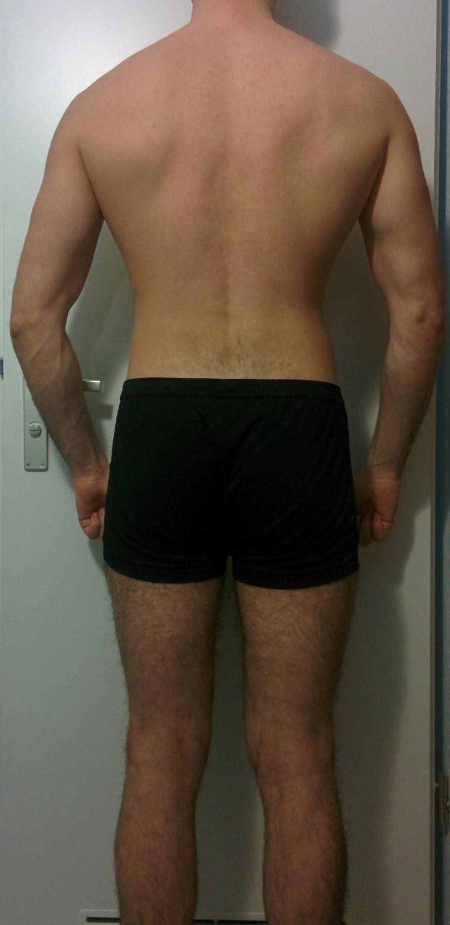 Stato alla penultima misurazione del 17/11/2016 (73,5Kg con 10,6% di massa grassa misurata, circa 12,6% reale) fronte e retro in posa neutrale in espirazione.
