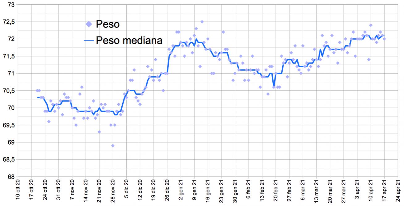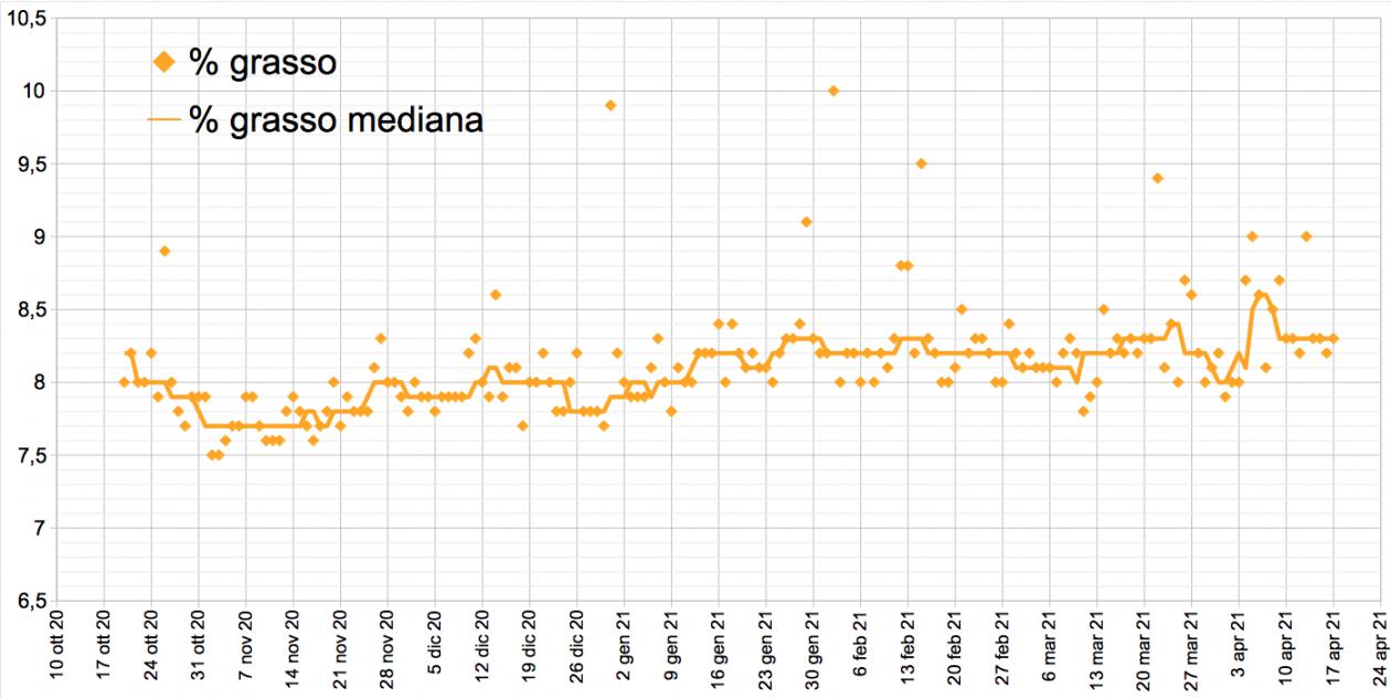 - percentuale di grasso 15 % (attuale, in oscillazione)