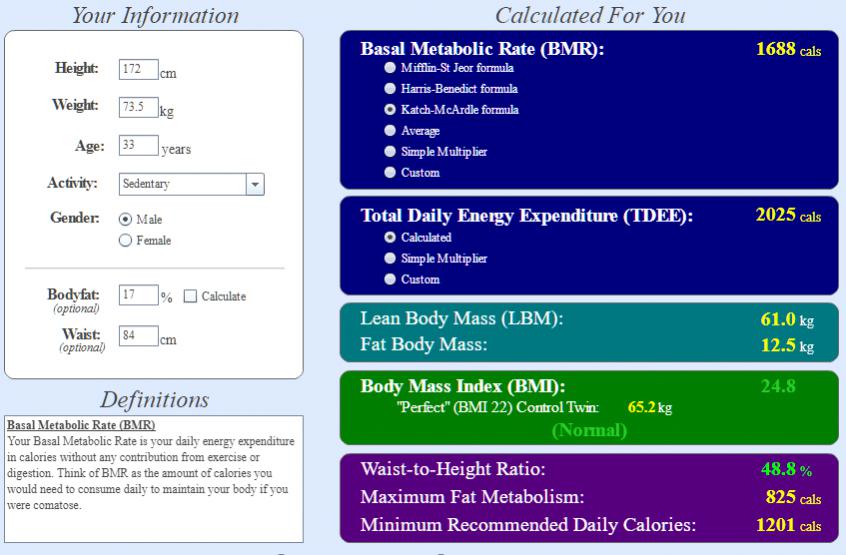 Sono un pò un misto tra mesomorfo e endomorfo (lasciatemela passare non so come spiegarlo), sotto i miei calcoli usando questo sito: http://www.1percentedge.com/ifcalc/ (la bodyfat mi sembra un pò esagerata a dire il veronon credo di avere il 17%)