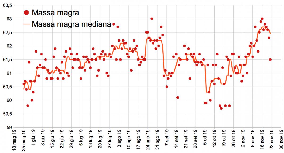 E per finire, secondo la bilancia avrei perso più di un chilo di massa magra in un paio di giorni... quindi aspettiamo.