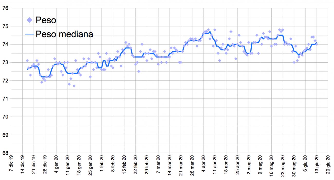 Ottimo andamento negli ultimi giorni. Peccato che il peso non salga, ma va bene lo stesso.