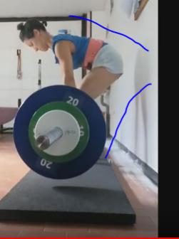 Stacco: nella prima doppia sei messa bene sopra il bilanciere e l' alzata è buona, nella seconda rifai l' errore dell altro giorno di buttarti indietro con il sedere in partenza, guarda la differenza di posizione delle spalle rispetto al bilanciere tra la prima e la seconda doppia. Devi restare sempre concentrata sul fatto di stare sopra il bilanciere e non dietro.