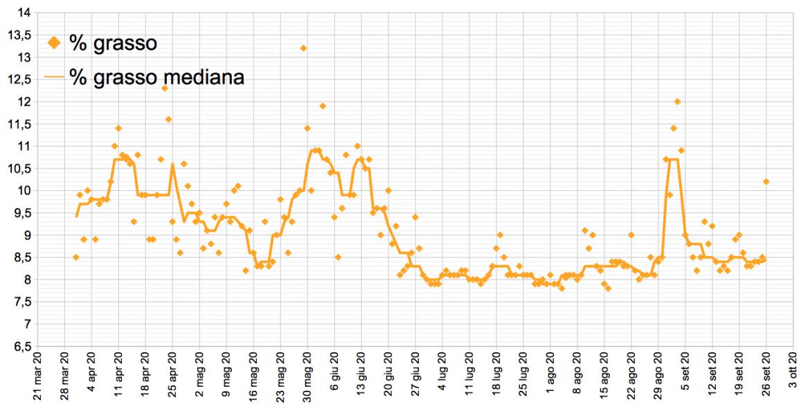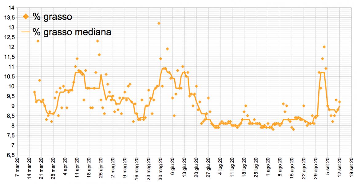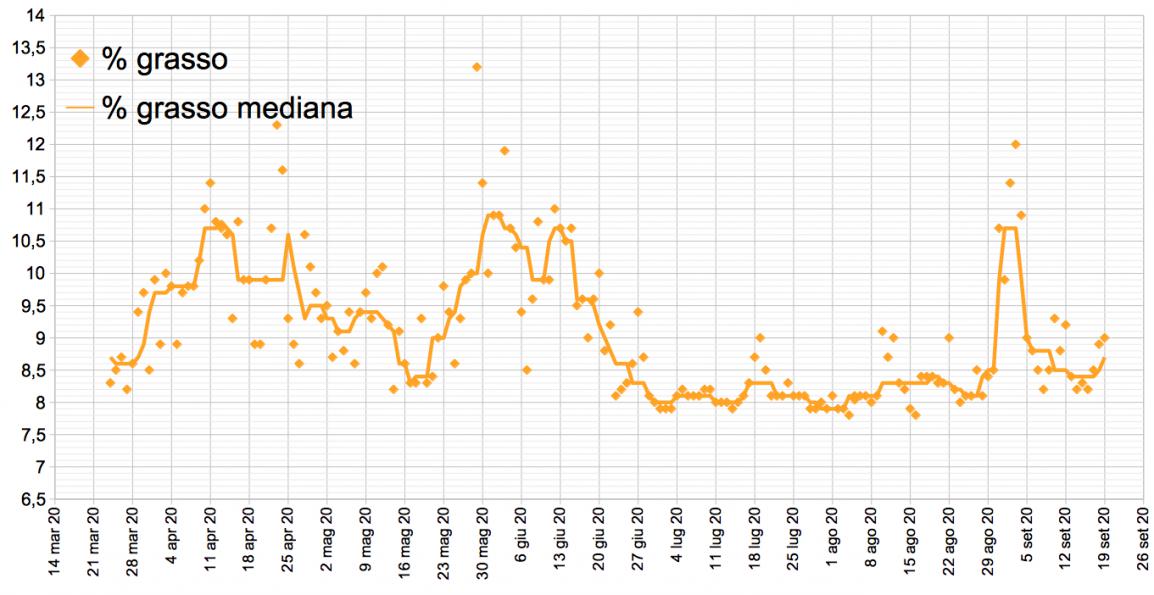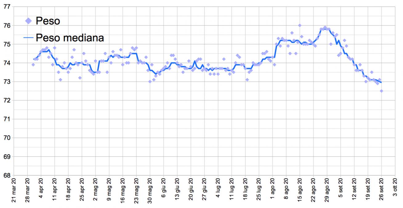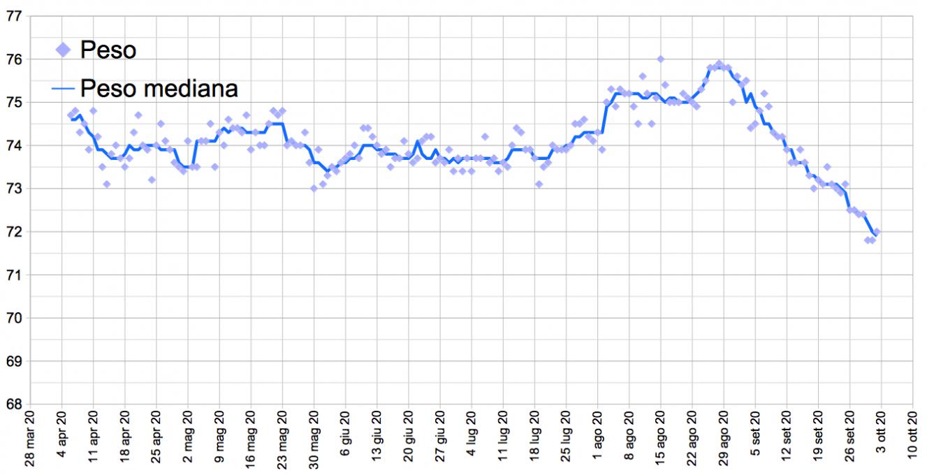 . Ovvero, a parità di percentuale di grasso il peso totale è più alto ora.