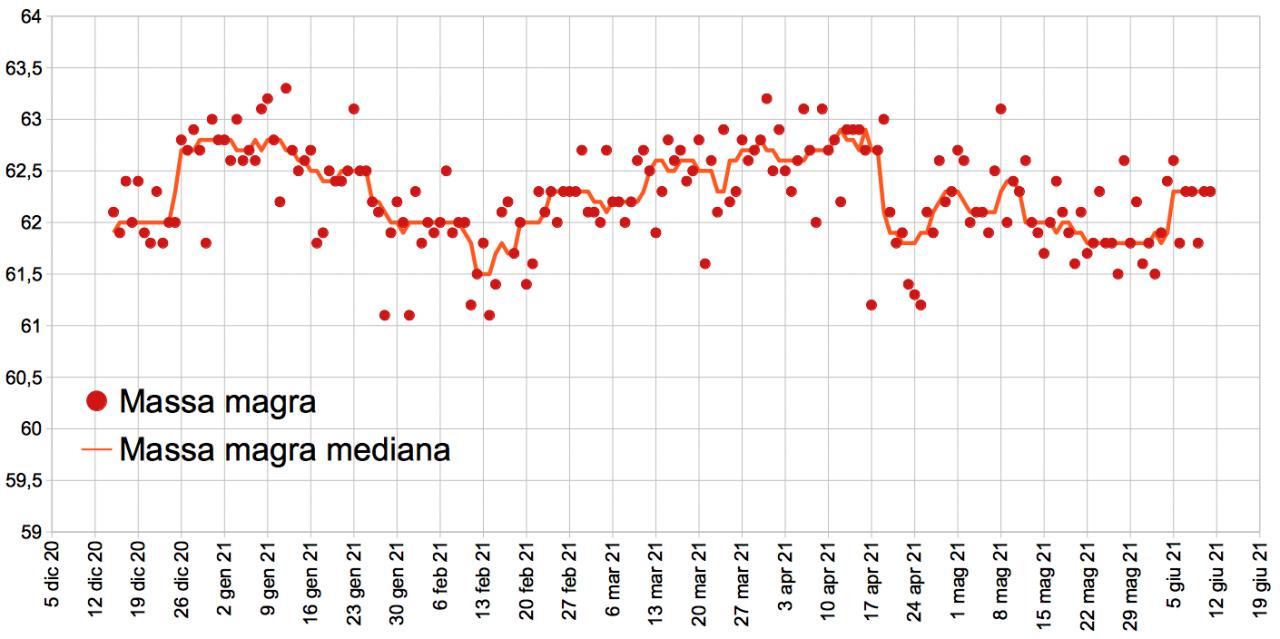 Buongiorno. Consueto rapido aggiornamento. Peso: Percentuale di grasso: Massa magra: Nulla di eclatante, condizione attuale non male. P.S.: fatta ieri la prima dose di vaccino. Buona domenica a tutti.