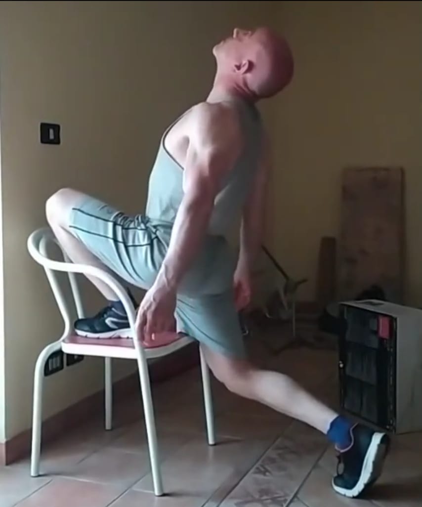 - divaricata frontale con con mani lontane dal bacino e schiena iperestesa per 40”